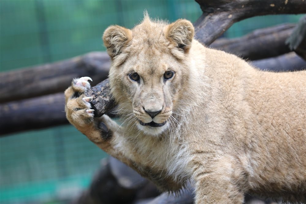 Maar door veel geduld en volharding van onze medewerkers kwam de leeuw in hem naar boven. Hij werd groter, sterker, kreeg meer zelfvertrouwen en begint zelfs al een brede manenkraag te krijgen. King laat zich ook op regelmatige basis horen met een diepe brul en zelfs het zwembad in zijn verblijf vormt nu geen hindernis meer (bekijk het filmpje hier beneden)!