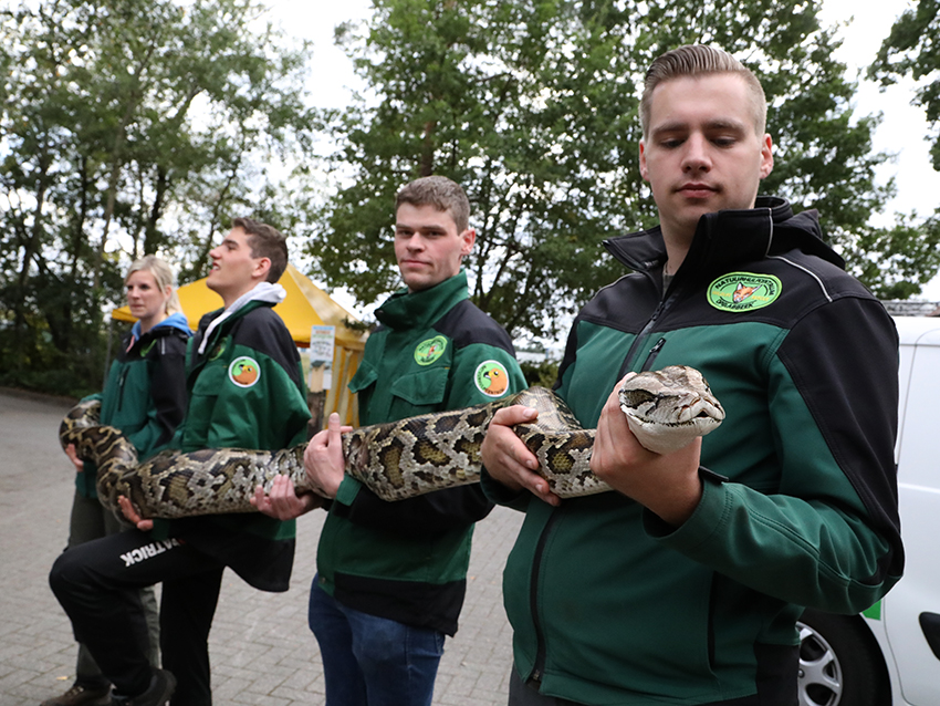 Toevallig vingen we begin deze week nog een tijgerpython op, dit keer werd het dier aangetroffen in een drugspand in Luik. Het waren de brandweermannen van het A.R.T. (Animal Rescue Team) uit Hesbaye die de python van 4,5m naar het Natuurhulpcentrum brachten. Voor beide reuzeslangen zal nu een oplossing gezocht worden in een dierentuin, reptielenzoo of gespecialiseerde opvang.