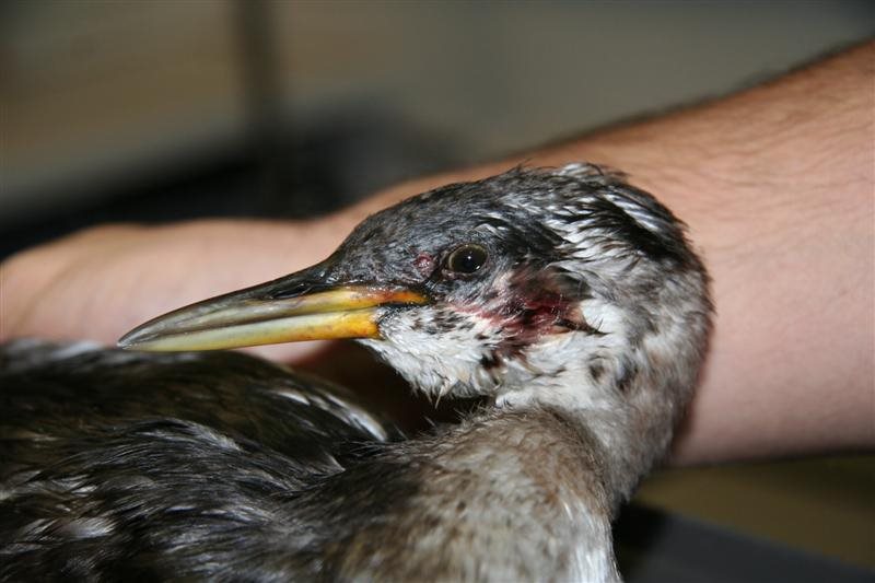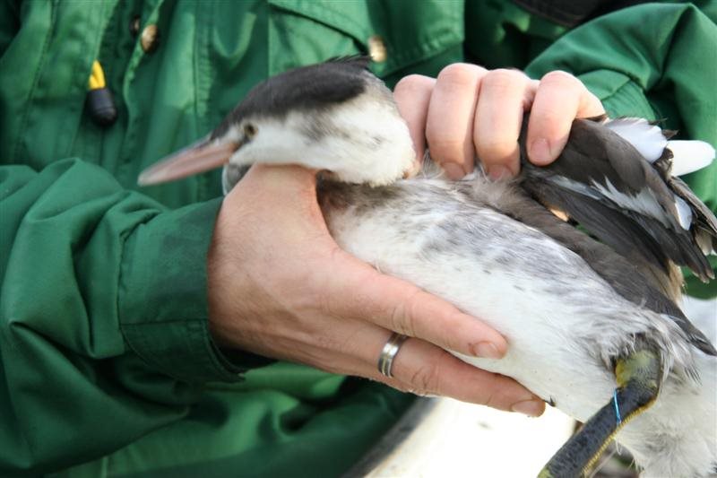 Vandaag werd een zeldzame roodhalsfuut gered die vast was geraakt in rondslingerende visdraad.