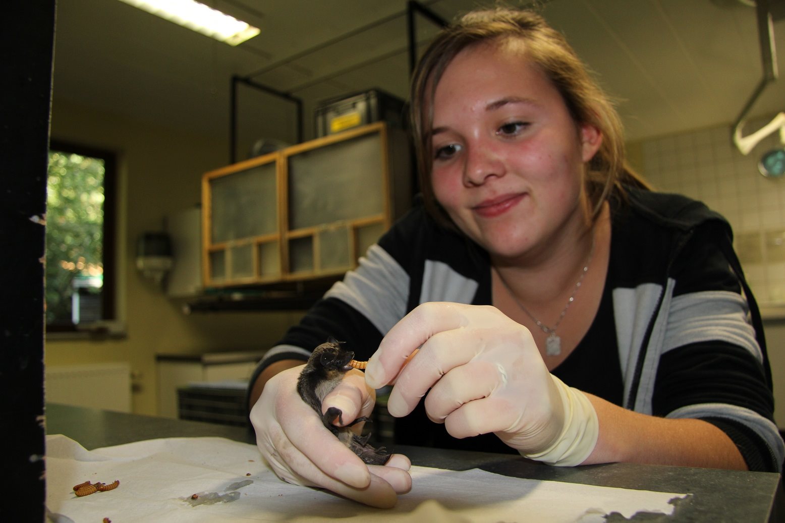Enkele dagen geleden kregen we van onze collega's van de Nederlandse dierenbescherming een zeldzame tweekleurige vleermuis binnen. Het dier was in Heerlen de derde verdieping