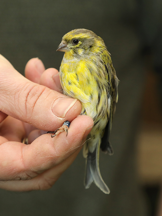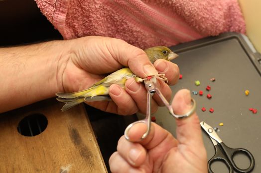 Europese kanarie (links) en keep (rechts), beide met gemanipuleerde pootringen