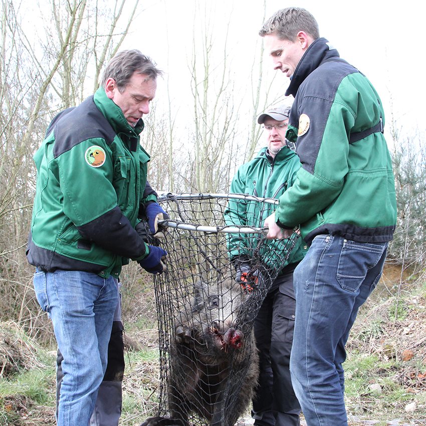 Het zwijn verschool zich tussen de bramen en was daardoor moeilijk te strikken in onze netten. Uiteindelijk lukte het ons om het dier te vangen en voor verzorging over te brengen naar het Natuurhulpcentrum. Na een eerste onderzoek konden er geen breuken worden vastgesteld, maar onze dierenverzorgers vreesden wel inwendige bloedingen door de aanrijding. Het dier werd rustig in een binnenkooi gehuisvest, maar overleed enkele uren later.