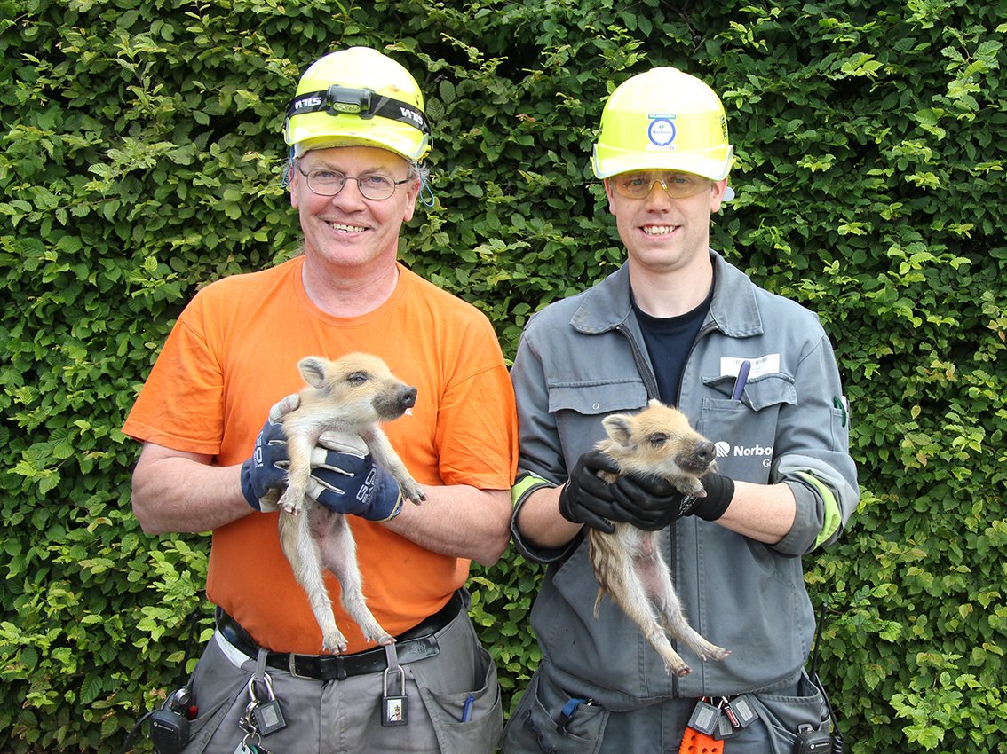Vanmiddag liep er een telefoontje binnen uit Genk. Daar hadden arbeiders van het bedrijf Norbord twee everzwijntjes gered uit een waterbekken.