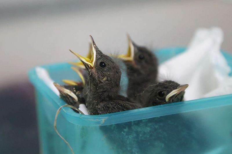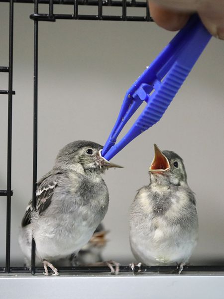 Zo verzorgen onze medewerkers momenteel meer dan 314 jonge dieren: 40 eekhoorns, 18 bosuilen, 3 ransuilen, 3 kerkuilen, 1 merel, 14 spreeuwen, 35 koolmezen, 20 pimpelmezen, 5 zwarte roodstaarten, 4 witte kwikstaarten, 3 huismussen, 4 roodborstjes, 30 kraaiachtigen, 3 dasjes, 10 konijnen, 1 boomkruiper, 30 hout- en tortelduiven, 2 buizerds, 8 kieviten, 1 waterhoen, 70 eendjes en 9 grauwe ganzen.