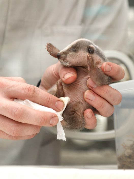 Omdat de moeder haar jongen niet meer aanvaardde, zat er niets anders op dan de babydasjes door onze dierenverzorgers te laten grootbrengen. Zo zullen ze de best mogelijke kansen hebben. De jongen zijn ongeveer 2-3 weken oud en stellen het goed. Ze worden momenteel op onze couveuseafdeling gehuisvest. Daar krijgen ze 5 maal daags aangepaste dassenmelk te drinken.
