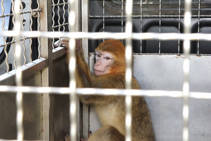 Beide mantelbavianen verbleven illegaal bij een zware jongen in een klein dorpje in Bretagne, Frankrijk. Samen met de plaatselijke politie,