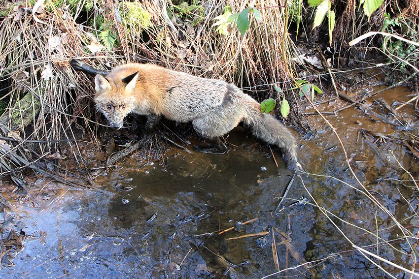 Vorige week werden we door een ongeruste wandelaar naar Neerpelt geroepen. Daar zou een vos vasthangen in een strop. Het arme dier lag in een gracht en worstelde wanhopig om los te komen.