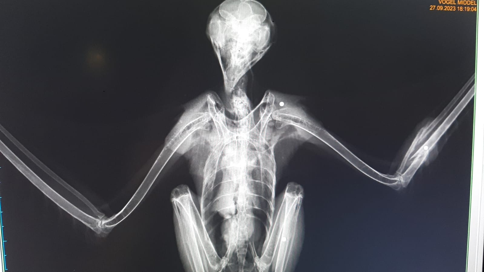 Deze ochtend kregen we telefoon vanuit Maaseik waar men langs de Maas een zeldzame velduil gevonden had die in zijn nachtelijke vlucht de prikkeldraad te laat opmerkte. Helaas zat het dier al enige tijd verstrikt en probeerde hij weg te komen. Hierdoor zijn de verwondingen zeer groot.