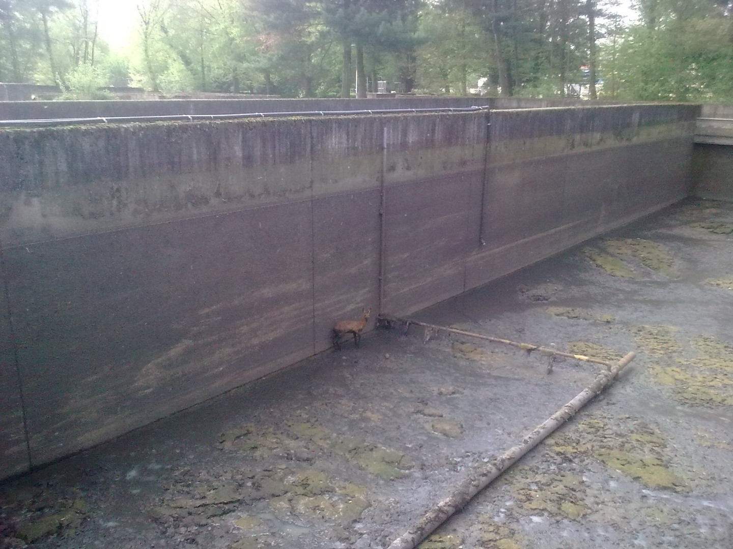 Op het terrein van een waterzuiveringsinstallatie van Aquafin was een ree terecht gekomen in een slibbekken. Het dier was waarschijnlijk over het muurtje gesprongen