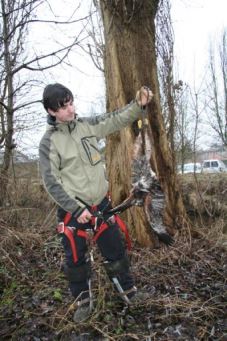 Gisteren haalden enkele medewerkers van het Natuurhulpcentrum een dode woestijnbuizerd uit een boom.