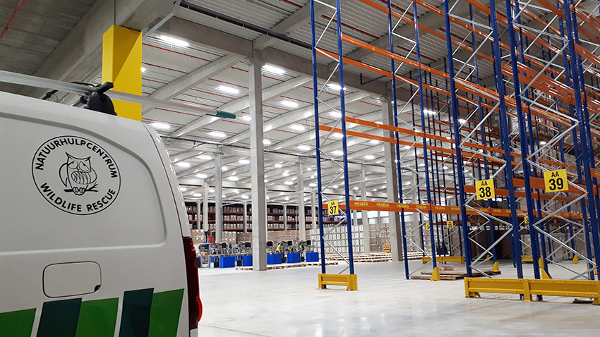 Vandaag kreeg het Natuurhulpcentrum een oproep van het logistieke bedrijf Kuehne & Nagel. In hun vestiging in Tessenderlo, een immense logistieke bedrijfshal, vloog sinds vanmorgen een kerkuil rond. Het is een raadsel hoe de vogel het splinternieuwe gebouw