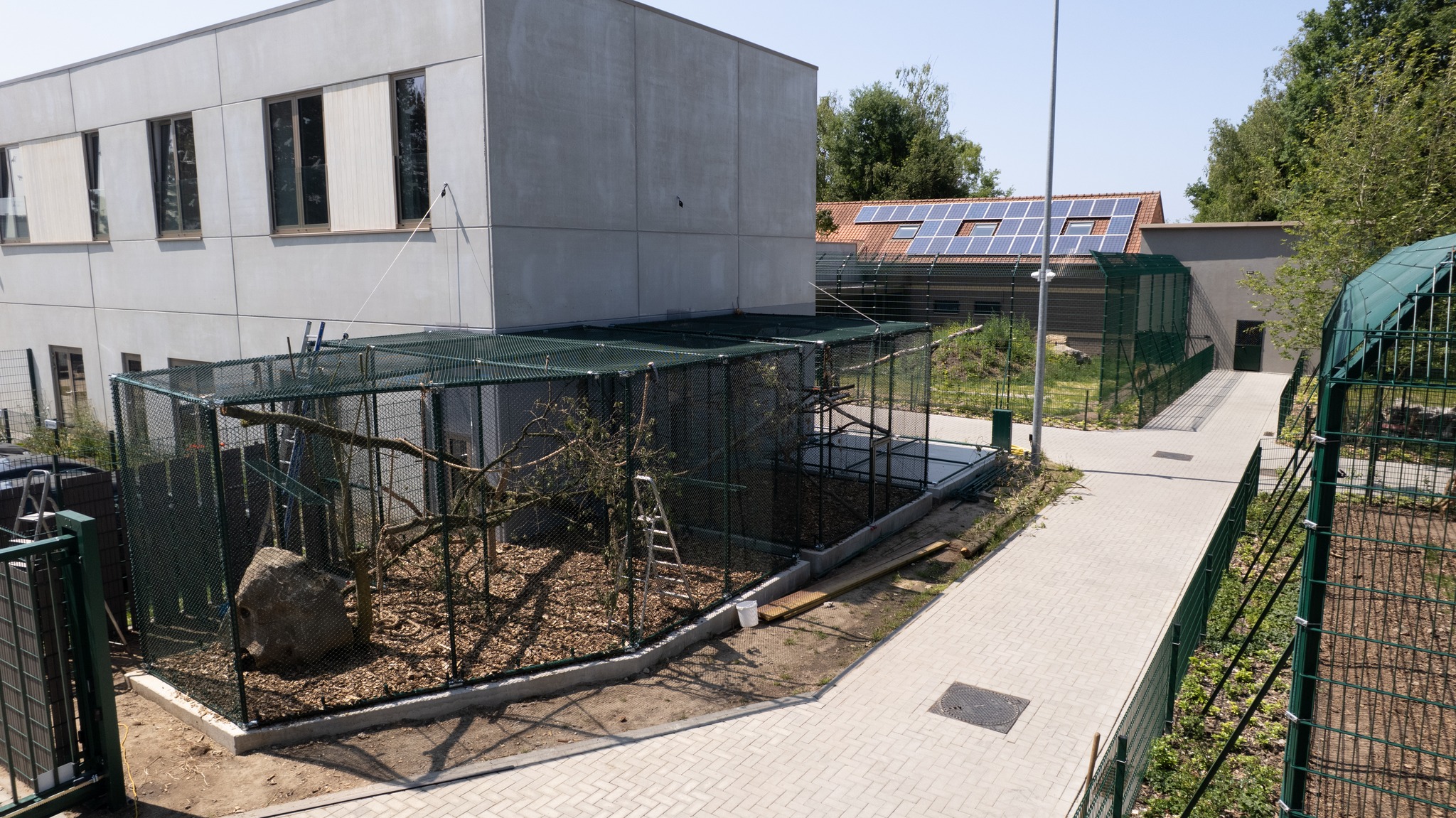 De binnenverblijven in onze nieuwbouw en de grote buitenrennen voor katachtigen waren al een tijdje klaar, maar onze technische dienst is momenteel druk bezig met de afwerking van de buitenverblijven voor kleinere exotische dieren. Eén kooi is zelfs al in gebruik door een groepje Java-apen. Op die manier kunnen heel wat exotische dieren de hele zomer profiteren van een warm zonnetje. Is het buiten toch te fris, dan vinden ze ongetwijfeld genoeg warmte in hun binnenverblijven. Dankzij geothermie kunnen we alle binnenverblijven voor dieren, maar ook onze burelen en studentenkamers, goedkoop warm houden, heel het jaar door!