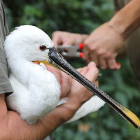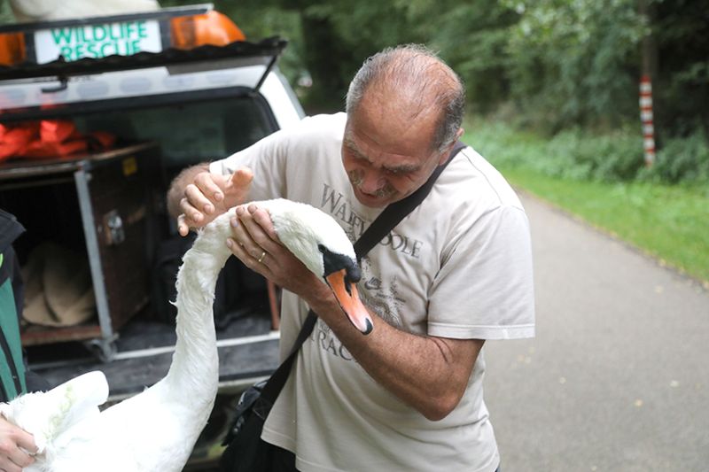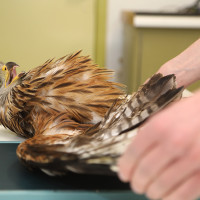 Jaarlijks vormen de inheemse Europese vogels de grootste categorie in ons overzicht. 5.681 dit jaar, ten opzichte van 5.128 in 2022. Ons project waarbij we gecontroleerd en onder strikte regels eieren rapen van weidevogelnesten die anders onherroepelijk zouden verdwijnen door landbouwactiviteiten, is een enorm succes aan het worden. 45 kieviten, 12 grutto’s, 11 wulpen en 26 kluten zagen het levenslicht in de broedmachines van het Natuurhulpcentrum. Bijna allemaal konden ze na enkele maanden terug worden vrijgelaten. Wetenschappers van het INBO (Instituut voor Natuur en Bos) voorzagen alle vogels van een wetenschappelijke ring. We kregen al enkele toffe terugmeldingen, onder andere uit Frankrijk. We zijn er van overtuigd dat hier nog heel wat groeipotentieel inzit. We gaan hier daarom nog meer op inzetten. Bij zo snel in aantal afnemende soorten als de weidevogels, telt letterlijk elk individu.Ook impactvol op onze werking waren de vogelgriep-uitbraken. We openden hiervoor een speciale tijdelijke quarantaineruimte en talloze stalen werden voor onderzoek opgestuurd naar het labo. Op die manier ontdekten we heel wat nieuwe vogelgriep-haarden in Vlaanderen.Van bosuilen met gebroken vleugels tot reigers met een pootbreuk, Stef en Matty, ons top-dierenartsenteam bogen zich weer geregeld over de operatietafel.Vaak denken mensen dat jonge rondhuppelende vogels hulp nodig hebben. Dit is meestal niet het geval, aangezien het soms enkele dagen kan duren vooraleer de spieren van een uit het nest gesprongen vogel sterk genoeg zijn om effectief te kunnen vliegen. Jaarlijks sturen we dan ook letterlijk honderden mensen terug met hun gevonden vogel waar niets mee aan de hand is. Toch werden in 2023 maar liefst 1.987 nestjongen verzorgd die wél hulp nodig hadden: 59 huiszwaluwen, 104 gierzwaluwen, 25 bosuiljongen,.. Leuk was ook een jonge kneu, de 4 oehoekuikens en de 105 merels, een teken dat ze goed aan het herkomen zijn van de klappen die de populatie enkele jaren geleden kreeg door het Usutu-virus.339 vogels werden gepakt door katten. Maar dit is een zeer zware onderschatting. Van de meeste breuken of wondes weten we de oorzaak niet. Ongetwijfeld zitten hier ook een groot aantal katslachtoffers tussen. Voor bosuilen en kauwen moesten we weer geregeld de daken opkruipen. Deze twee holenbroeders aanzien een schoorsteen soms als de ideale nestholte. Ze springen erin, maar beseffen niet dat een schoorsteen net wat dieper is dan de gemiddelde boomholte. De vogels tuimelen helemaal naar beneden, proberen zonder resultaat te ontsnappen, en worden vaak ’s avonds, wanneer de bewoners gezellig in de zetel zitten, ontdekt. Bij een gewone kachel kunnen de bewoners de vogel vaak zelf bevrijden. Vaak kunnen de onfortuinlijke dieren dan gewoon terug vrijgelaten worden, of krijgen ze, indien nodig, een poetsbeurt waarbij ze voorzichtig met een haardroger worden propergeblazen. Maar wanneer de kachel bijvoorbeeld is dichtgemetseld, moet ons klimteam in actie komen om op een veilige maar efficiënte manier de vogels te bevrijden. 14 keer gebeurde dit bij een bosuil, 3 keer bij een kauw, en enkele keren bij een houtduif, al is deze laatste eigenlijk geen holenbroeder…