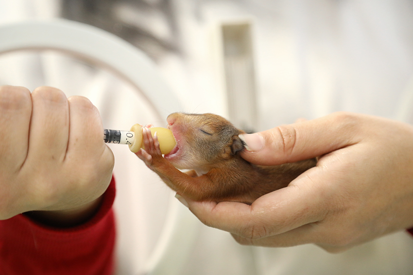 Er bevinden zich momenteel in totaal 27 jonge eekhoorns in onze opvang, waarvan 17 piepkleintjes in de couveuses. De jongen stellen het gelukkig erg goed en worden met aangepaste melk, veel ervaring en geduld grootgebracht door onze zorgouders. Dat zijn seizoensgebonden vrijwilligers die gespecialiseerd zijn in het grootbrengen van jonge dieren.