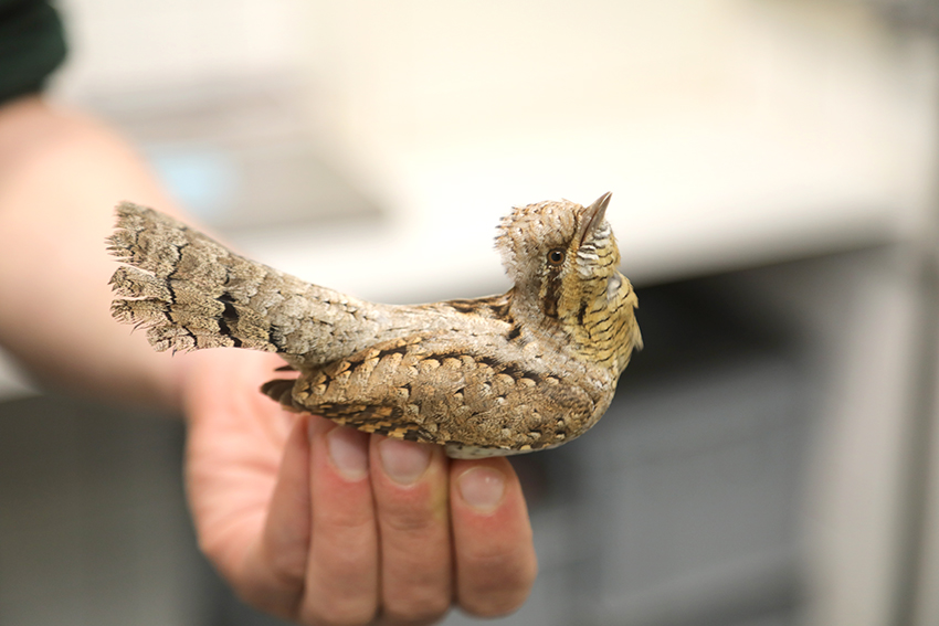 Sinds gisteren verblijft er een zeldzaam vogeltje in onze opvang. Het gaat om een mysterieus spechtje: de draaihals.