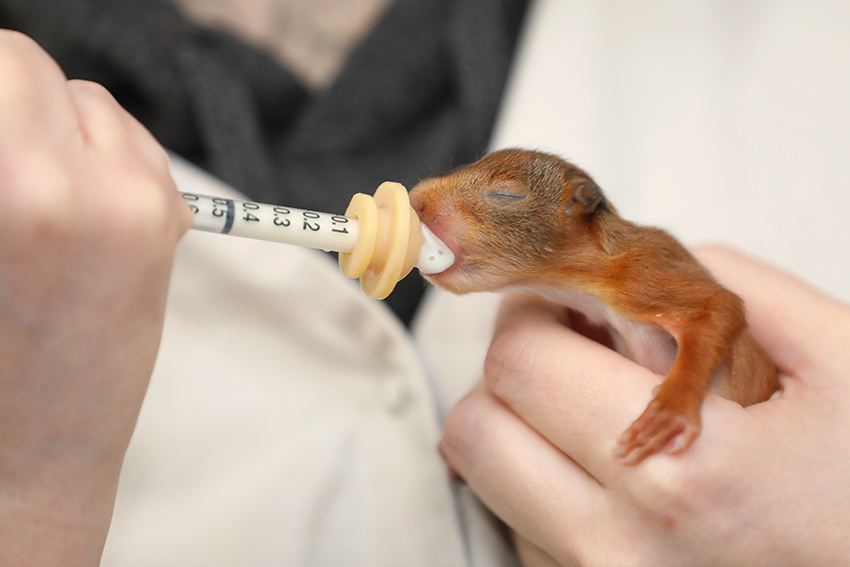 Sinds deze week verblijven er 4 jonge eekhoorns op de materniteit van het Natuurhulpcentrum. Eekhoorns worden traditioneel vroeg in het jaar geboren. Deze 4 jongen werden aangetroffen in een omgewaaide boom en waren al erg onderkoeld. Ze konden gelukkig snel opwarmen in onze couveuse en momenteel stellen ze het goed.