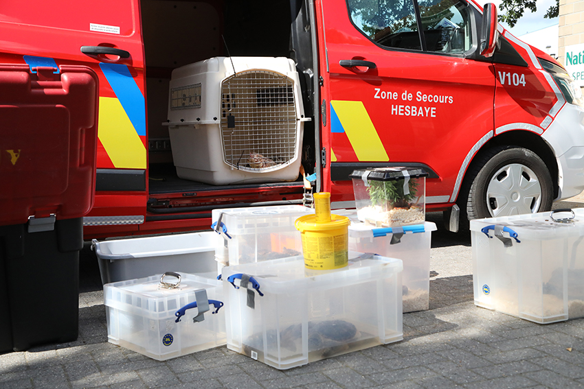 Deze week ving het Natuurhulpcentrum maar liefst 30 in beslag genomen reptielen op uit Wallonië. De dieren werden tijdelijk ondergebracht bij het Animal Rescue Team van Hesbaye. Deze brandweermannen zijn gespecialiseerd in het omgaan met wilde dieren en worden ingezet om politie- en overheidsdiensten bij te staan tijdens inbeslagnames.