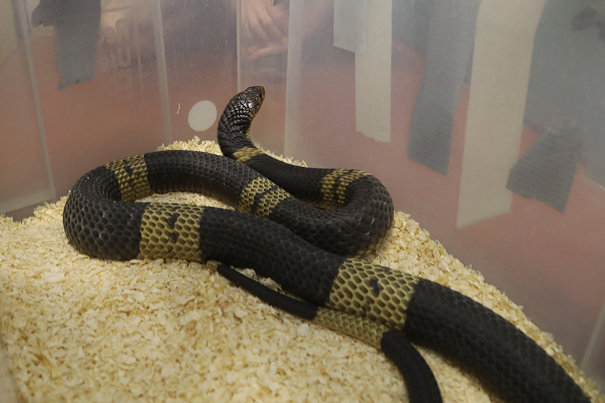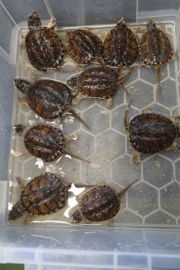 Het merendeel van de reptielen zijn waterschildpadden waaronder gevaarlijke bijt- en alligatorschildpadden. Deze soorten mag je in Wallonië niet houden zonder vergunning: ze kunnen erg groot (80cm) en zwaar (75kg) worden en hebben een vervaarlijk scherpe bek. Ook een bijzonder giftige Egyptische cobra werd bij een particulier in beslag genomen. Daarnaast ontvingen we nog teju's, een steppevaraan, enkele boa constrictors, een Ambonese doorschildpad en een bijzonder grote Borneo rivierschildpad.