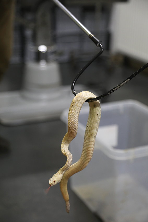 Een dierenarts-brandweerman werd ter plaatse geroepen en die slaagde erin de giftige slangen veilig in een transportbox te krijgen. Daarna begon hij te zoeken naar een opvangadres voor de slangen en zijn zoektocht leidde hem tot in Oudsbergen. De twee slangen verblijven voorlopig in het Natuurhulpcentrum in een beveiligde afdeling. Er zal zo snel mogelijk een definitieve oplossing gezocht worden voor de ratelslangen in een dierentuin of gespecialiseerde opvang.