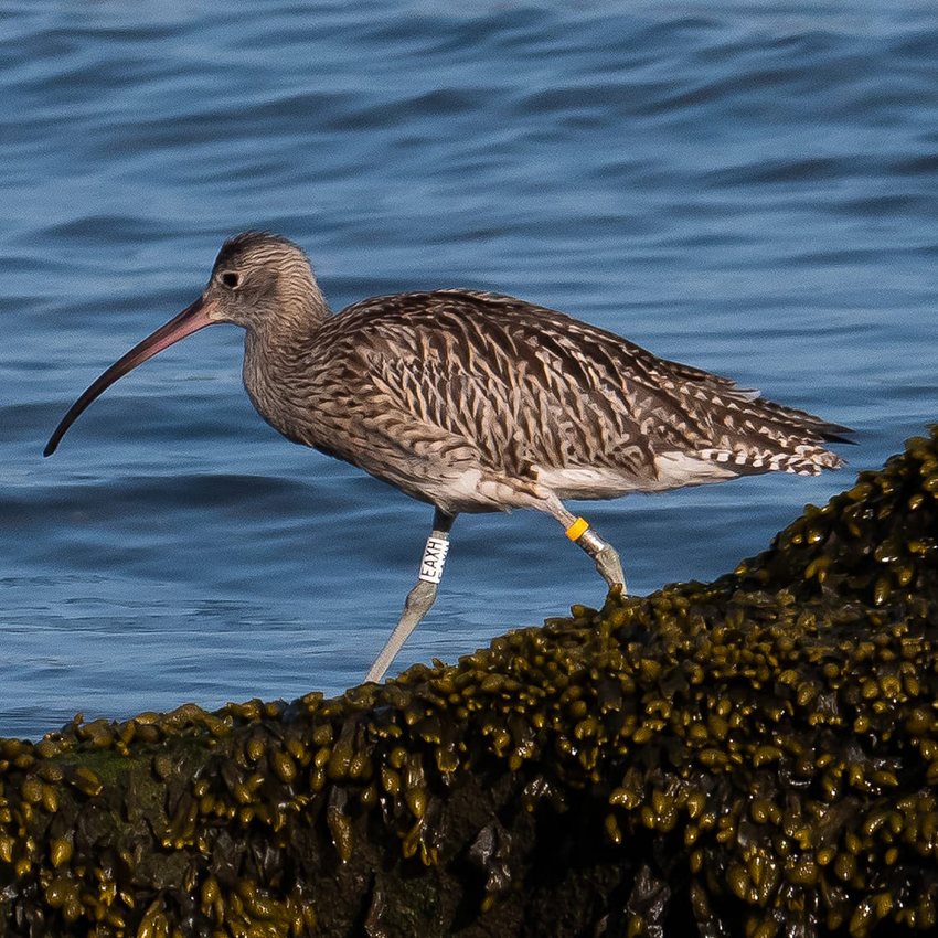 Samen met Natuurpunt werden de jongen vrijgelaten in hun geboortegebied. Ze werden daarbij voorzien van een wetenschappelijke ring én een kleurring. Dergelijke kleurringen, met grote letters en cijfers, laten vogelkijkers toe om vanop grotere afstand de combinatie af te lezen en zo informatie te verstrekken aan de onderzoekers. Groot was dan ook onze verbazing toen één van onze gekleurringde wulpen opdook in Camposancos in het NW van Spanje op de grens met Portugal. Fotograaf Santiago Fraga kon daar onze wulp langs de rivier Mino fotograferen. Een mooi bewijs dat het grootbrengen van jonge wulpen wel degelijk succesvol kan zijn...