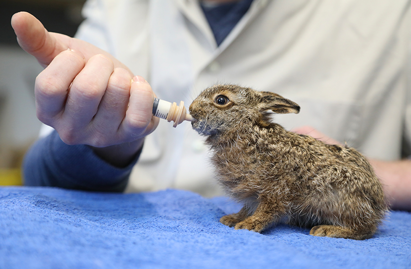 Haasjes die effectief gebeten worden, halen het vaak niet en sterven enkele dagen na hun opname in onze dierenkliniek. Dit exemplaar werd gelukkig niet al te ernstig gebeten en wordt nu verder door onze dierenverzorgers grootgebracht. Het grootbrengen van jonge dieren is specialistenwerk. Begin er dan ook nooit zelf aan.