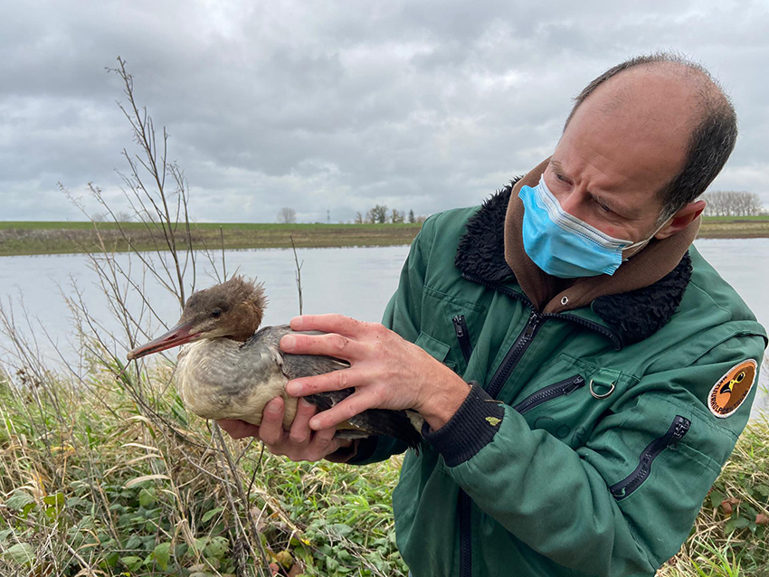 Sinds gisteren verblijft er een grote zaagbek met schotwonden in het Natuurhulpcentrum. De zeldzame en beschermde watervogel werd in Heppeneert (Maaseik) voor het oog van een getuige uit de lucht geschoten door een jager.