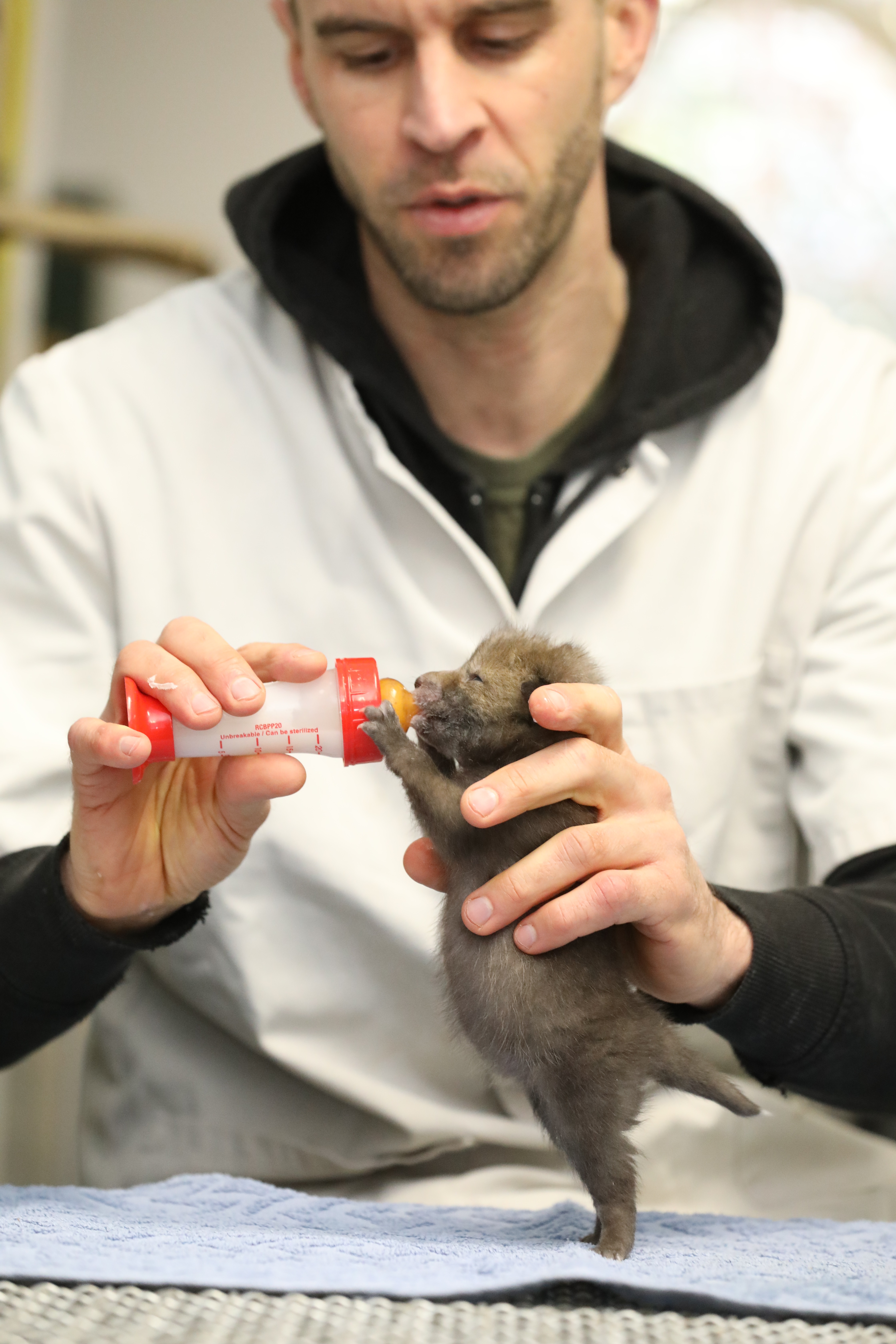 De jongen werden overgebracht naar het Natuurhulpcentrum. We brengen ze nu verder groot met speciaal aangemaakte vossenmelk. Eenmaal ze geen melk meer moeten, krijgen ze langzaam maar zeker meer vlees te eten. Doen ze dit goed, dan mogen de vier jongen verhuizen naar onze grotere buitenkooi.