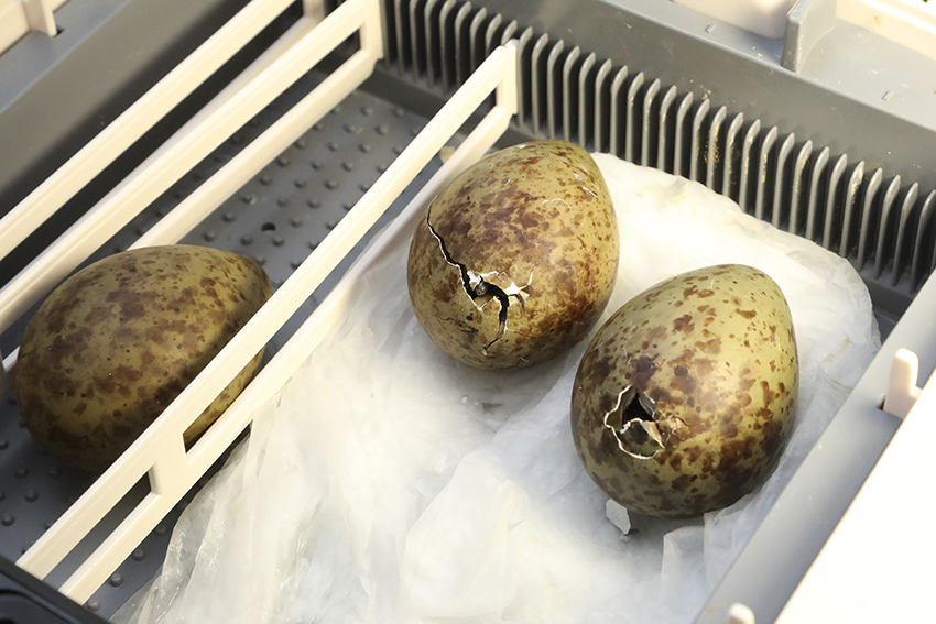 De eitjes werden in een incubator gelegd en na enkele weken vertoonden ze de eerste barstjes. Na een 'strijd' van vele uren kroop het eerste jong uit het ei. Wulpen zijn nestvlieders die vrij snel op hun poten kunnen staan en al actief op zoek gaan naar voedsel. Daarom worden ze momenteel gehuisvest in een verwarmde couveuse waarin hun natuurlijk biotoop (grasland) wordt nagebootst.