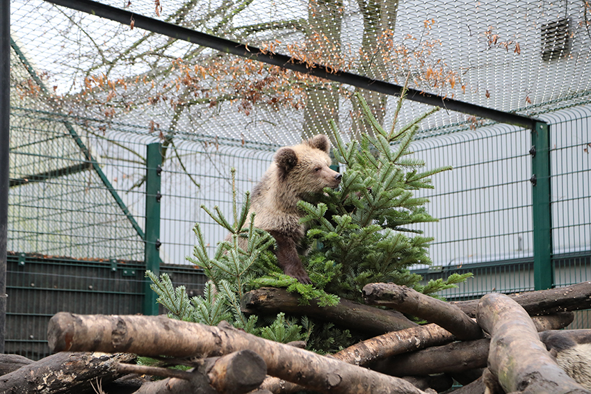 'Het ideale kerstgeschenk voor onze jonge beren': dachten we en hun buitenren werd versierd met wel 12 kerstbomen waartussen lekkere noten, stukjes fruit, zalm en vlees verstopt werden. Op die manier kregen onze Albanese beertjes ook een leuk kerstkadootje.
