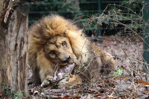Hoewel beide leeuwen niet echt Kerstmis vieren, lieten ze zich de kerstkalkoen natuurlijk wel goed smaken...