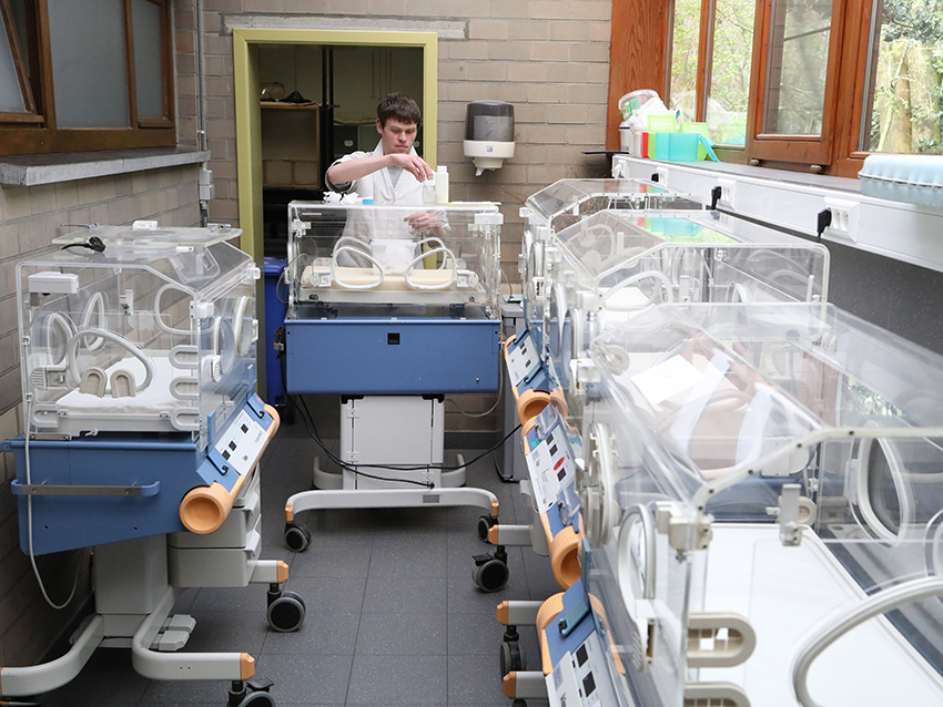 Belangrijk om weten: probeer nooit zelf jonge dieren groot te brengen. Dit is specialistenwerk en vergt heel wat materiaal, correcte voeding en vooral ervaring. Onmisbaar voor het grootbrengen van jonge dieren zijn couveuses. We waren dan ook blij verrast toen we 3 couveuses mochten ontvangen van het Ziekenhuis Oost-Limburg (ZOL). Deze toestellen zijn afgeschreven voor de 'menselijke' geneeskunde, maar doen nog prima dienst voor onze jonge wilde dieren. Ook de couveuses die reeds in ons bezit waren, werden gratis gecontroleerd en hersteld door de firma Dräger.
