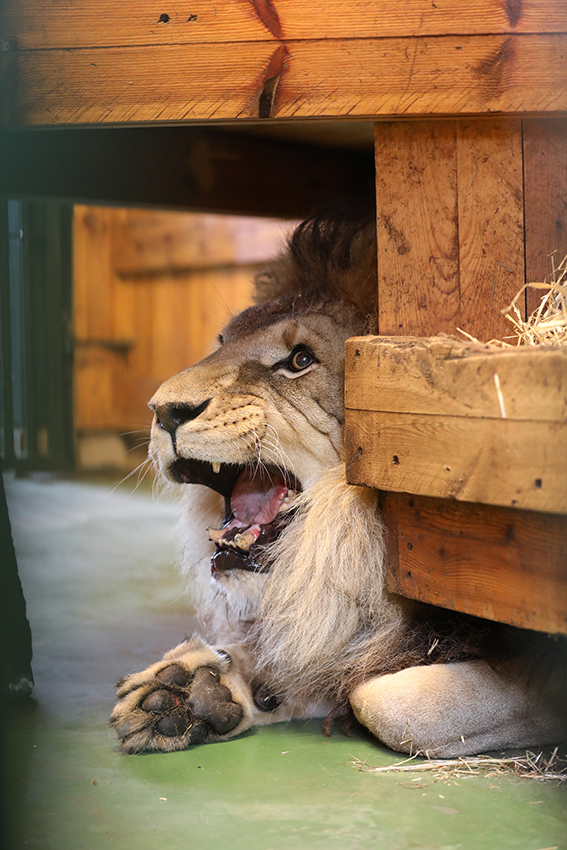 De kooien van de poema en de leeuw lagen letterlijk tussen een lunapark, speeltuin en paintball attractie. De dieren hadden geen privacy en konden zich niet onttrekken aan het zicht van de joelende kinderen. De gespecialiseerde transportfirma die de dieren ging opladen voor ons, werd door de eigenaar van de dieren op alle mogelijke manieren gesaboteerd. Zo moesten ze bijvoorbeeld 2u wachten omdat hij met zijn 4x4 jeep de toegang geblokkeerd had. Uiteindelijk lukt het dan toch de dieren mee te nemen.
