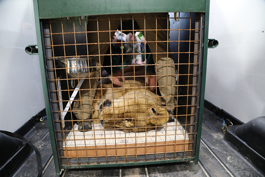 Alpha en Cora, twee leeuwinnen die al sinds januari 2017 in het Natuurhulpcentrum verbleven, zijn vorige week verhuisd naar een leeuwenopvangcentrum in Zuid-Afrika.