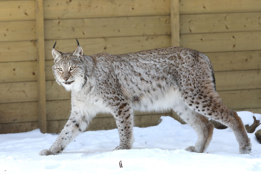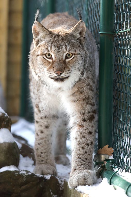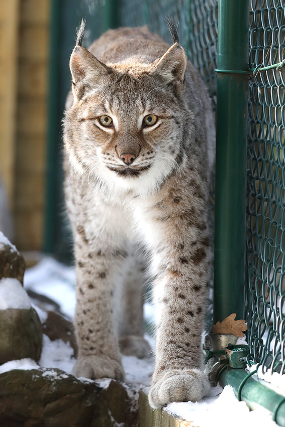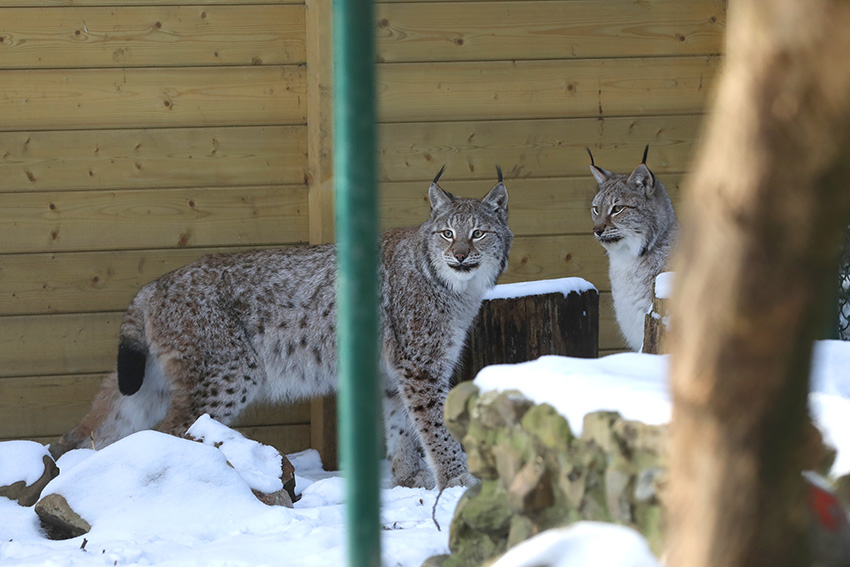 Het besneeuwde buitenverblijf vormde een prachtig toneel voor de lynxen die hun nieuwe verblijf uitgebreid verkenden...