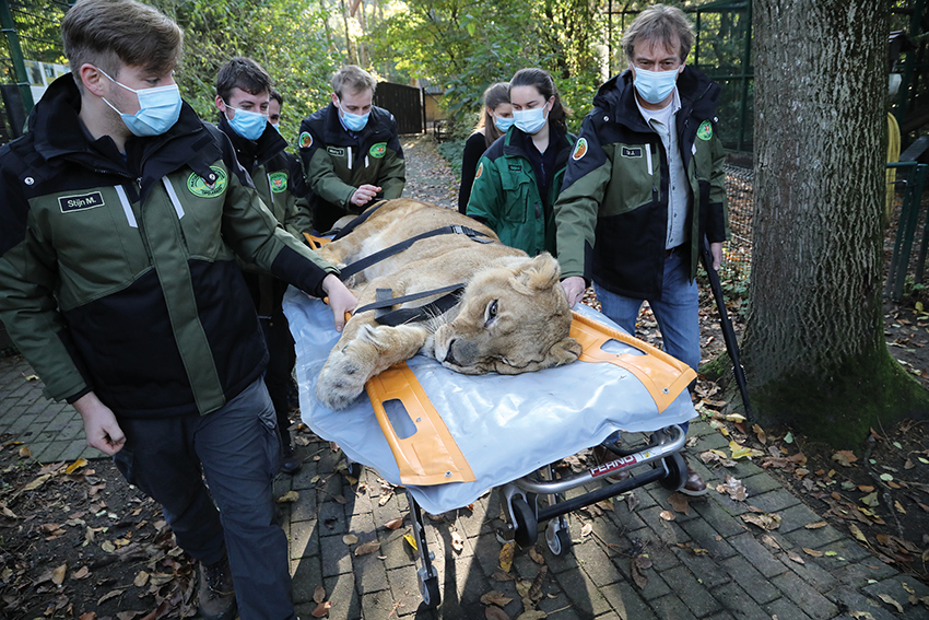 Leeuwin Mia, de levensgezellin van Mao, moest vandaag onder het mes... Al enkele weken waren er alarmsignalen dat het met Mia niet zo goed ging. Ze had geen eetlust meer, was futloos en vermoeid. Daarom werd ze deze week door onze dierenartsen uitwendig onderzocht en werd er een gezwel vastgesteld, mogelijk kanker.