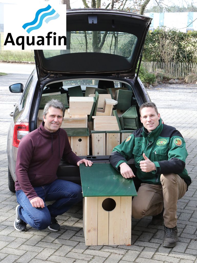 Aquafin gaf alvast het goede voorbeeld. Zij proberen de biodiversiteit op hun terreinen en rond hun waterzuiveringsinstallaties te verhogen door het ophangen van een brede waaier aan nestkasten. Het project had zelfs zoveel succes dat ook hun personeelsleden vragende partij waren om nestkasten te bestellen. Afgelopen week kwam Aquafin-medewerker Gert verschillende keren zijn wagen volladen met de bestelde nestkasten.