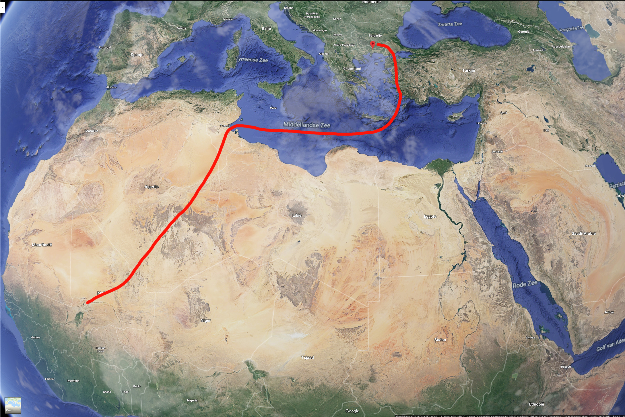 Ze bracht de winter door in de buurt van een moerasgebied in Mali. Gezien het beperkte bereik van het gsm-netwerk in Mali, hoorden we vaak weken lang niets van haar. We begonnen ons zorgen te maken, want voor een kiekendief is Mali toch een gevaarlijke plaats. Droogte, voedselgebrek, jacht, hoogspanningsleidingen,... vormen een reeël gevaar. De opluchting was dan ook groot wanneer we begin april plots signalen binnenkregen van Brunhildes zender. Op 6 april bleek ze boven de Sahara van Algerije te zitten. Ze was op dat moment al ruim 2.000 km richting Noord gevlogen. Op 8 april overnachtte ze aan de kust van Tunesië.