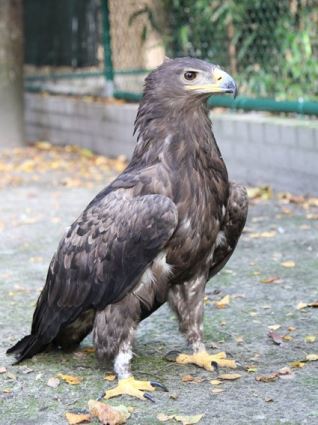 Gisteren slaagde een buurtbewoner er dan toch in de arend te vangen met een visnet. De dappere man kon de vogel in de koffer van zijn auto meenemen naar huis en bond hem daar, met zijn riempjes, vast aan een boom. Een van onze medewerkers is de vogel vervolgens gaan ophalen.