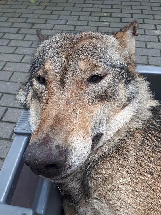 Vanmorgen kreeg het Natuurhulpcentrum een melding van een aangereden wolf op de N76 t.h.v. de fietsovergang - Gestelstraat. Onze medewerkers gingen ter plaatse en troffen een dode wolf aan in de wegberm. Het bleek om een volwassen man te gaan. Vermoedelijk gaat het om August, de 'godfather' van de Limburgse wolvenroedel. Hij heeft dit jaar, samen met Noëlla, minstens 7 welpen en was vermoedelijk op de terugweg na een jachtpartij.
