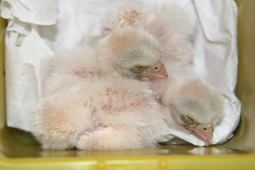 Gisteren bracht een werknemer van Elia een nest met roofvogelkuikens binnen.