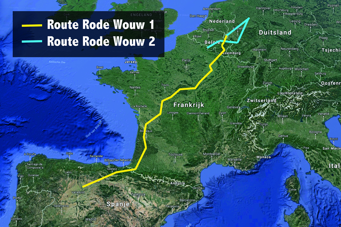 Rode wouw 1 overwinterde in de winter van 2017-2018 in het Noord-Westen van Spanje, een typisch wouwengebied. Hij keerde in het voorjaar van 2018 terug naar België en zwierf de hele zomer rond op de grens Nederland-België. In het najaar 2018 begon deze wouw opnieuw aan zijn trektocht naar Spanje om daar te overwinteren.