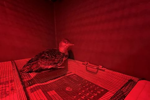 Het net werd intussen met succes verwijderd. Het dier zal een nacht bij ons blijven zodat hij kan opwarmen en morgen zullen we hem naar onze collega's van VOC Oostende brengen waar ze over de nodige ervaring en accommodatie beschikken om de roodkeelduiker de beste kans op overleven te geven. N