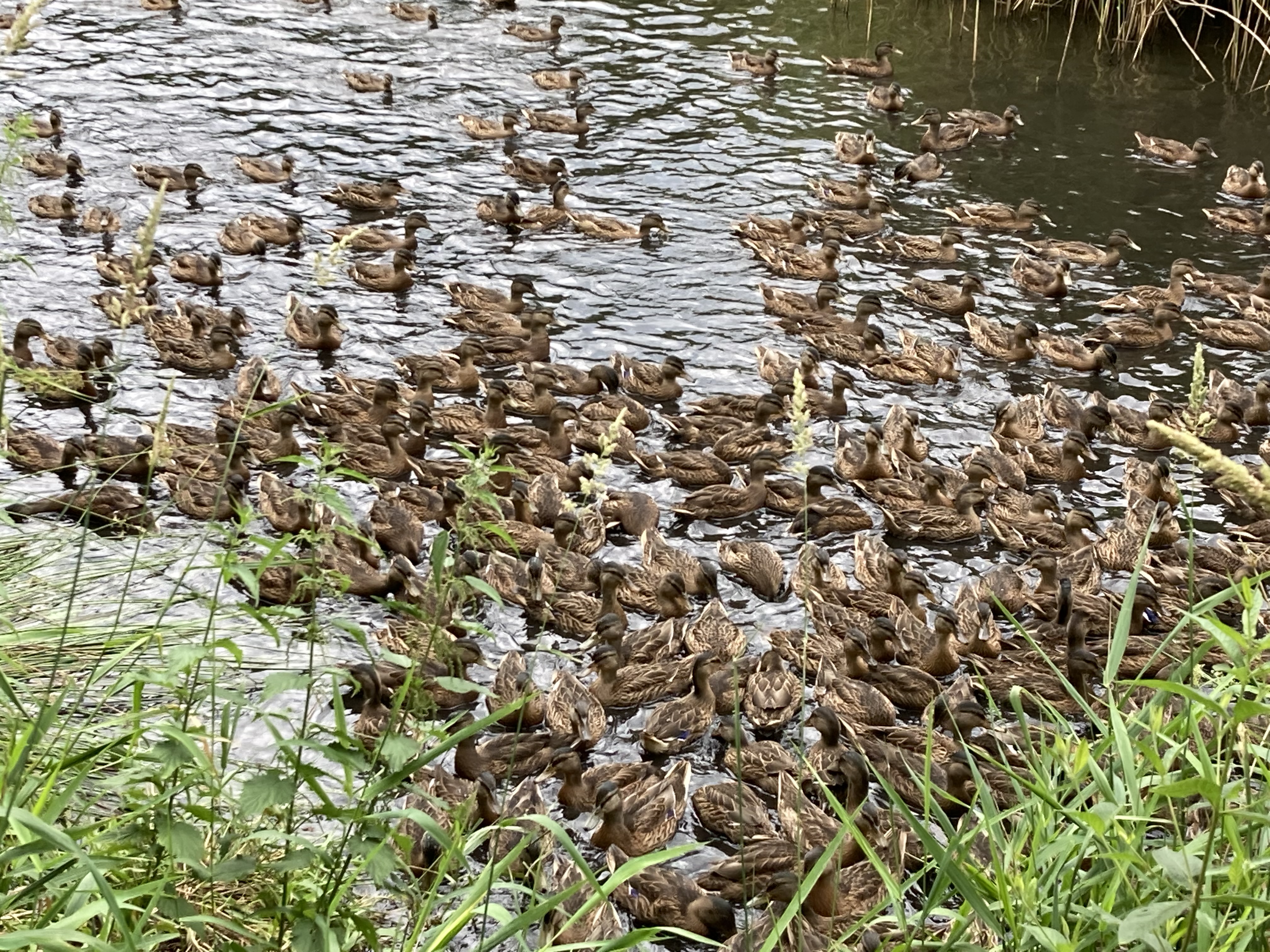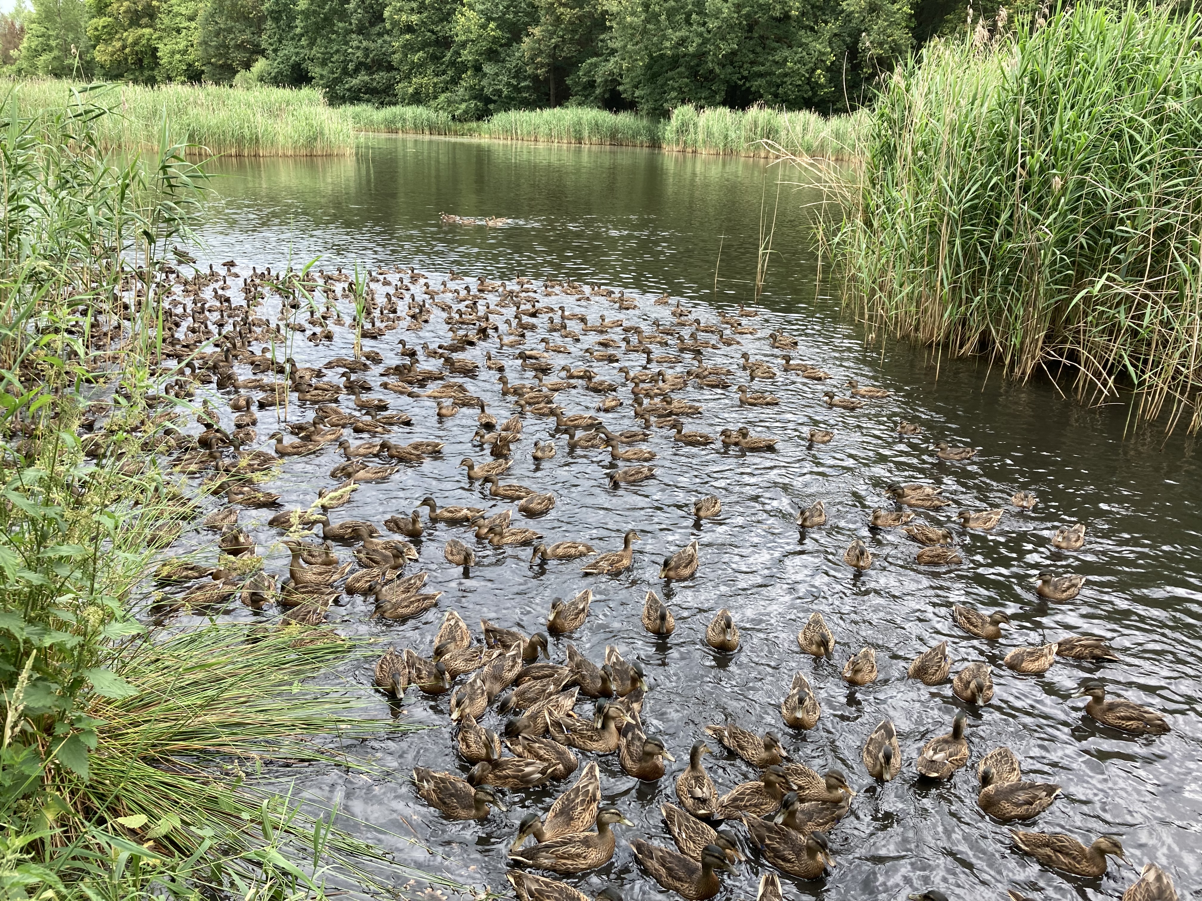 Onlangs kon een wandelaar beelden maken van het fenomeen. De wandelaar wenst anoniem te blijven omdat het betreffende terrein in feite niet toegankelijk is. Het betreft een waterrijk jachtgebied van een rijke industrieel dat volledig omheind is. Er wordt alles aan gedaan om maar geen pottenkijkers toe te laten. Maar, de beelden zijn hallucinant: wanneer de wandelaar aan de waterkant staat zie je al minstens honderd wilde eenden. Maar het wordt nog gekker: wanneer er enkele blaadjes in het water gegooid worden verschijnen er vanuit het riet nog eens enkele honderden wilde eenden van dezelfde leeftijd. Naar schatting gaat het om 500 vogels!
