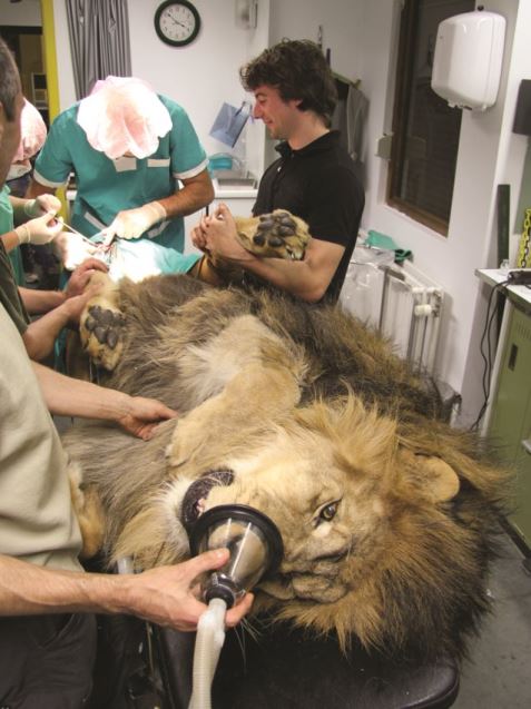 Vandaag hadden onze dierenartsen hun handen vol met het uitvoeren van een operatieve ingreep bij Simba, onze leeuw.