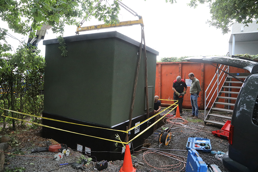 Daarnaast moeten we zorgen dat onze site (4ha groot) over voldoende stroom kan beschikken. Hiervoor werd er een hoogspanningscabine aangevraagd en deze werd gisteren alvast geleverd.