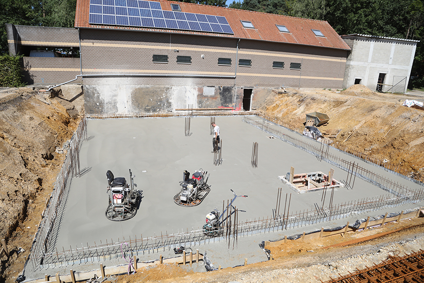 Regelmatig zullen we via deze weg communiceren over ons nieuwbouwproject. Het Natuurhulpcentrum staat voor de grootste uitbreiding in haar geschiedenis. De werken werden voor het bouwverlof al aangevat met het uitgraven van de kelder en de voorbereidingen voor de keldervloer. Afgelopen weken werd er verder gewerkt aan de kelder: de vloer werd gestort en gepolierd. Momenteel werkt men aan de voorbereidingen voor het storten van de kelderwanden.