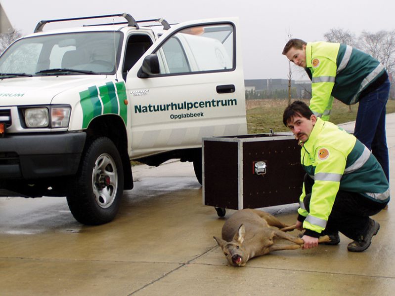 * Bij vossen, dassen, reeën, everzwijnen, bevers of andere grote dieren kan u altijd contact opnemen met een erkend opvangcentrum. Die komen dergelijke dieren ophalen.