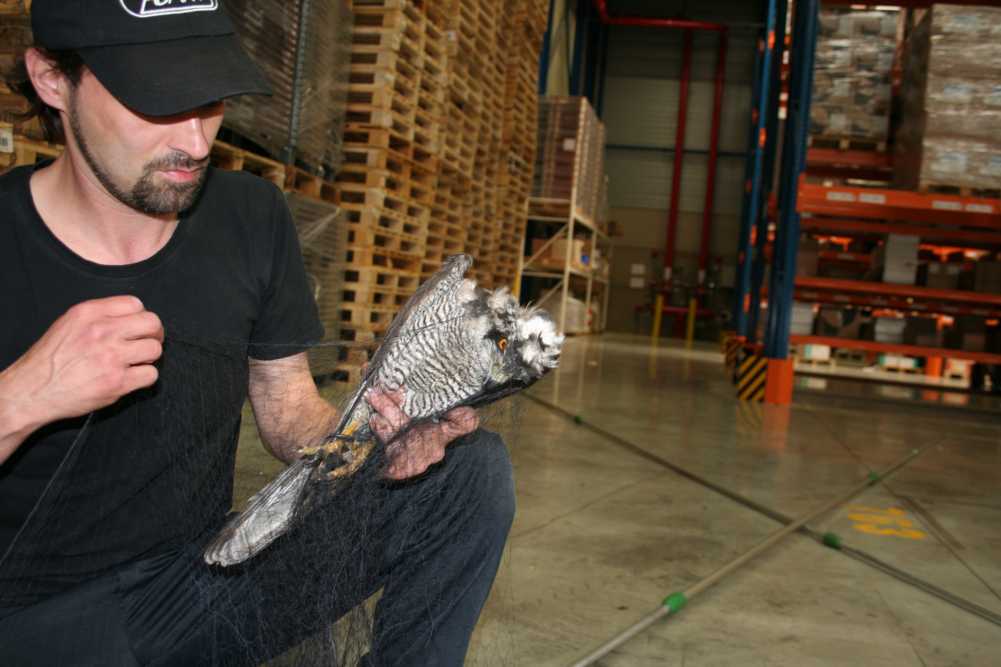 Havik, door het Natuurhulpcentrum gevangen uit een fabrieksloods.