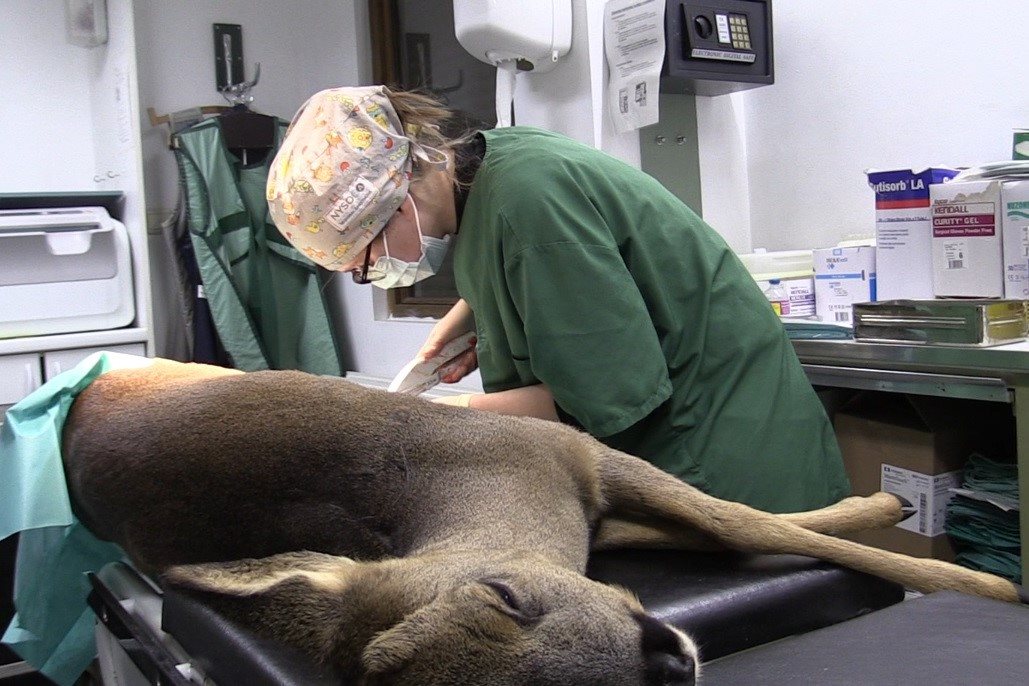 Vandaag vroeg een ree in As om onze aandacht. Het dier zat gevangen in een schapendraad en had een lelijke snee op zijn achterpoot. Nadat het ree was bevrijd stond onze dierenarts Roxanne klaar om de wonde te hechten. De ingreep is goed gelukt en nu is het afwachten of het ree goed hersteld. We houden jullie op de hoogte!