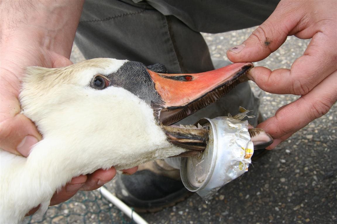 Rondslingerend zwerfvuil zorgt erg vaak voor problemen bij wilde dieren. Vandaag bijvoorbeeld, kregen we een oproep uit "Heerenlaak", een jachthaven in Maaseik. Een drankblikje was daar vastgeraakt rond de ondersnavel van een knobbelzwaan.